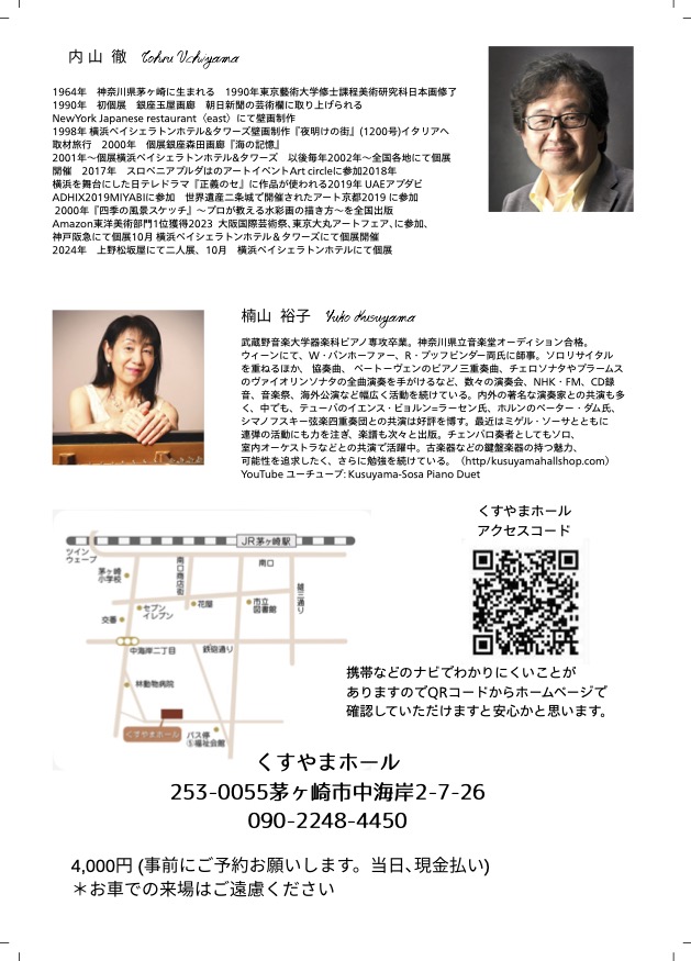 日本画家とピアニストの変なトークも見もの(聴きもの?)かもしれません。楽しんでいただけましたら嬉しいです
